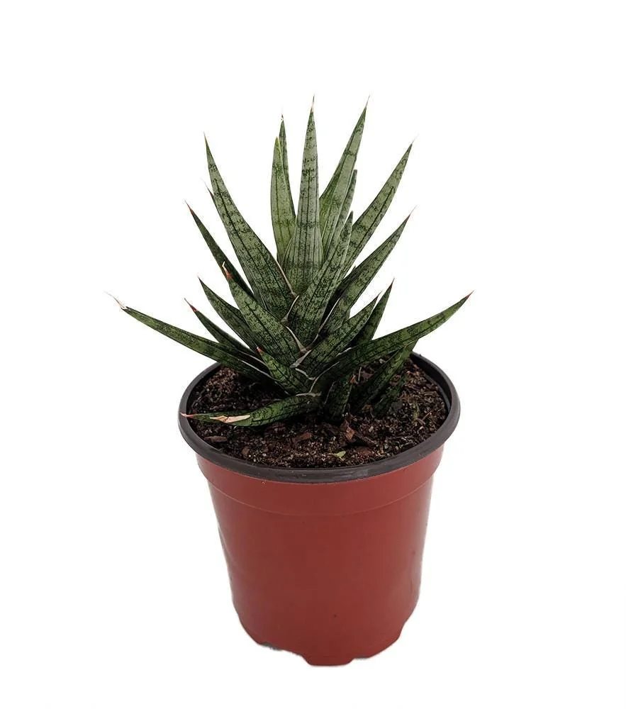 Your plant will be shipped securely in its nursery pot, with soil to ensure minimal stress during transit. While it is a young plant, it possesses all the characteristic features of the mature Sansevieria Francisii. Expect it to gradually develop its densely packed, cylindrical leaves and unique stem structure. With proper indoor snake plant care, this resilient specimen will continue to grow and become a striking focal point in your home, eventually reaching a more substantial size of up to 1-2 feet tall over several years, though it can be kept smaller with strategic repotting or division.