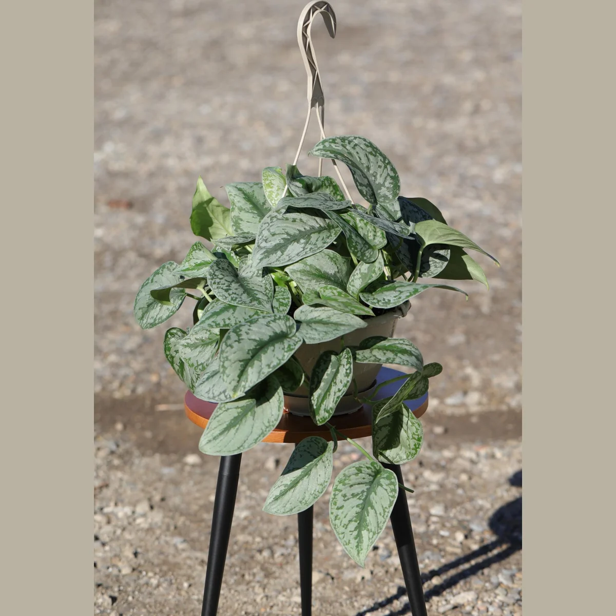 - Q: What size pot does it come in? A: This silver satin pothos plant is delivered in an 8-inch hanging basket, providing a good start for its growth and an attractive display.