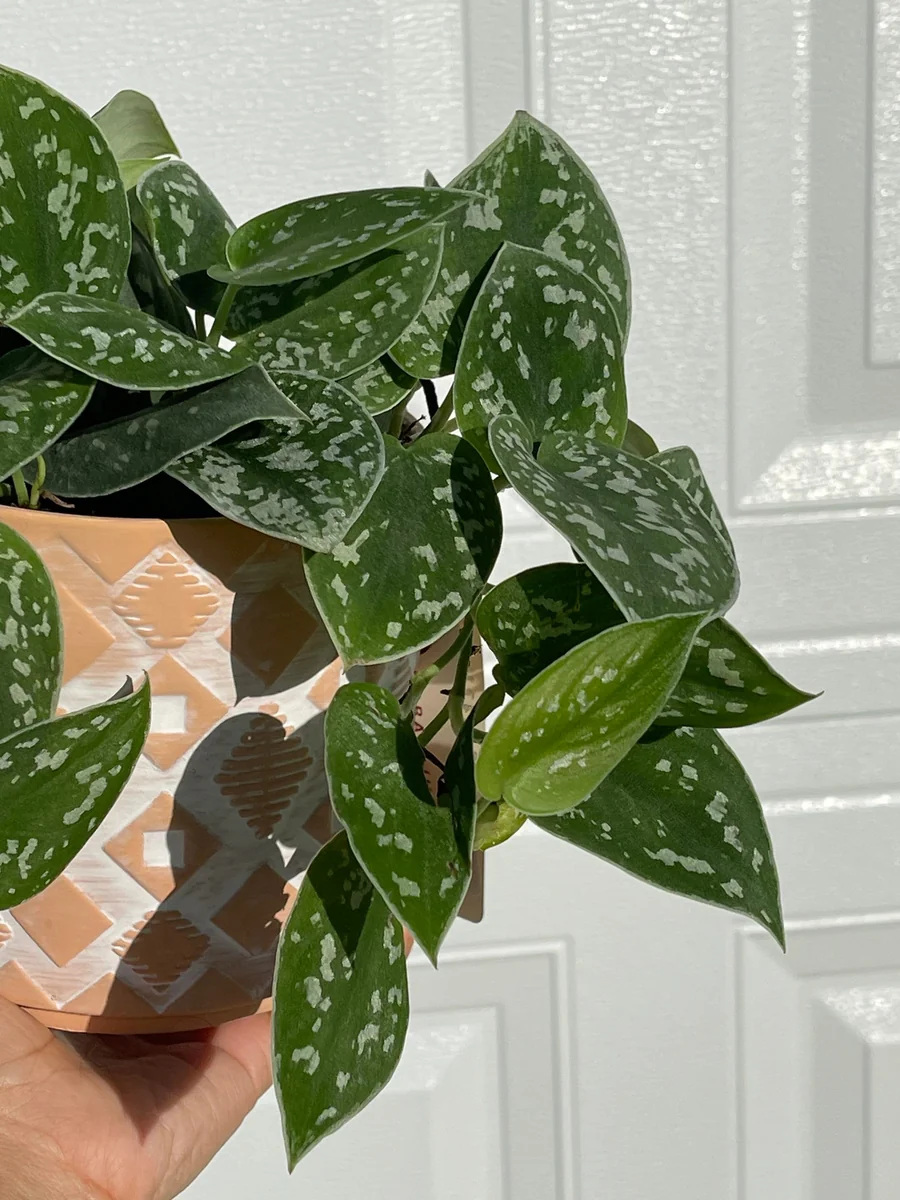 - Q: How much sunlight does it need? A: Your silver pothos live plant prefers bright, indirect light. Avoid direct harsh sunlight, which can scorch its leaves. It can tolerate lower light conditions, but its growth may slow, and the silver variegation might become less pronounced.