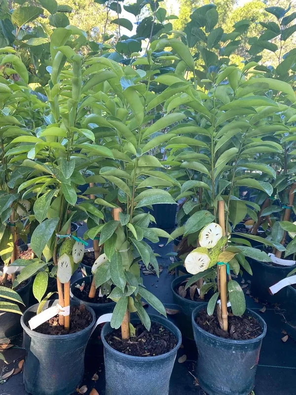 - Robust and Healthy Growth: This soursop tree live plant arrives fully rooted in a 3-gallon pot, indicating a well-established root system that promotes vigorous growth and resilience. Its thick trunk signifies a strong and healthy plant.