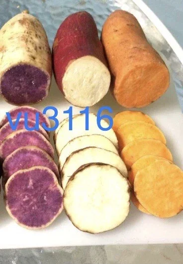 • Q: What is the difference between the varieties in this pack? A: The Okinawa variety has purple skin and deep purple flesh, known for its unique flavor and high antioxidants. The Red Japanese variety has reddish-purple skin and creamy white flesh, often described as chestnut-like. The Beauregard variety is the most common, with copper skin and sweet orange flesh.