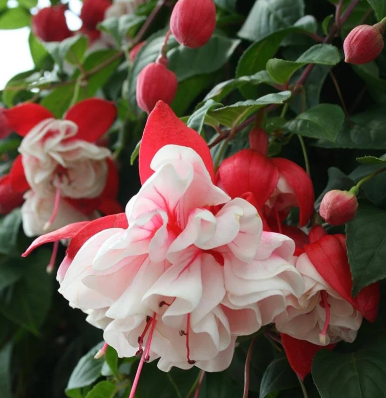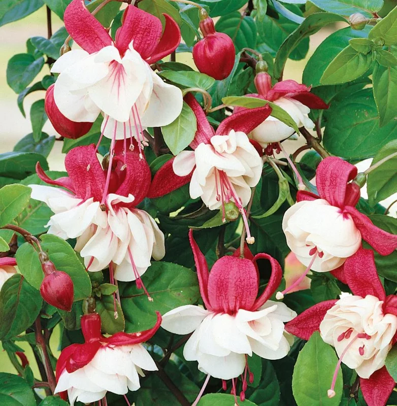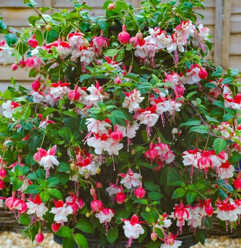 - Enhances Shaded Areas: Ideal for brightening up shady spots where many other flowering plants struggle, adding rich color and texture to often overlooked parts of the garden. The striking red and white fuchsia flowers truly pop in dimmer light.