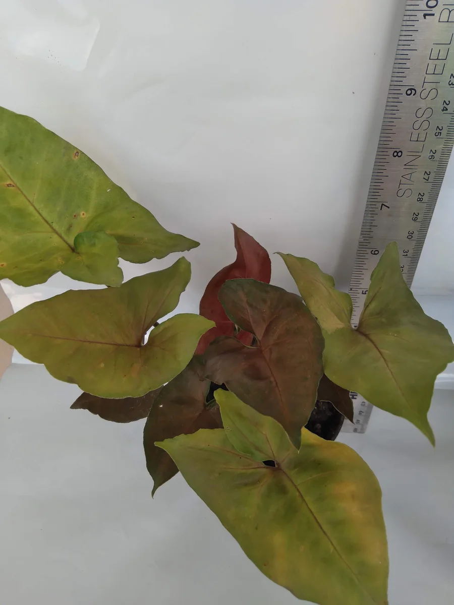 - Q: What are the best conditions for the green and red syngonium to maintain its vibrant colors? A: To maintain the vibrant green and red hues, provide bright, indirect light and consistent, but not excessive, watering. Good humidity also helps in promoting healthy, colorful foliage for your green and red syngonium.