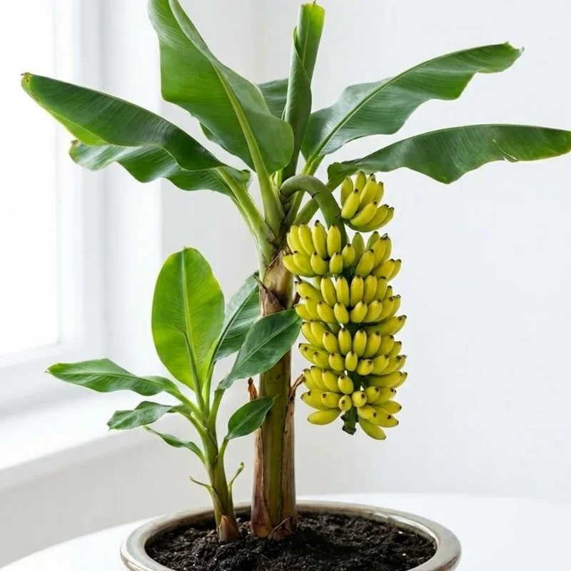 • Q: Can this plant produce bananas? A: While it is a banana plant, this truly tiny variety is primarily grown for its ornamental foliage and compact size rather than for fruit production. It’s a decorative dwarf banana tree.