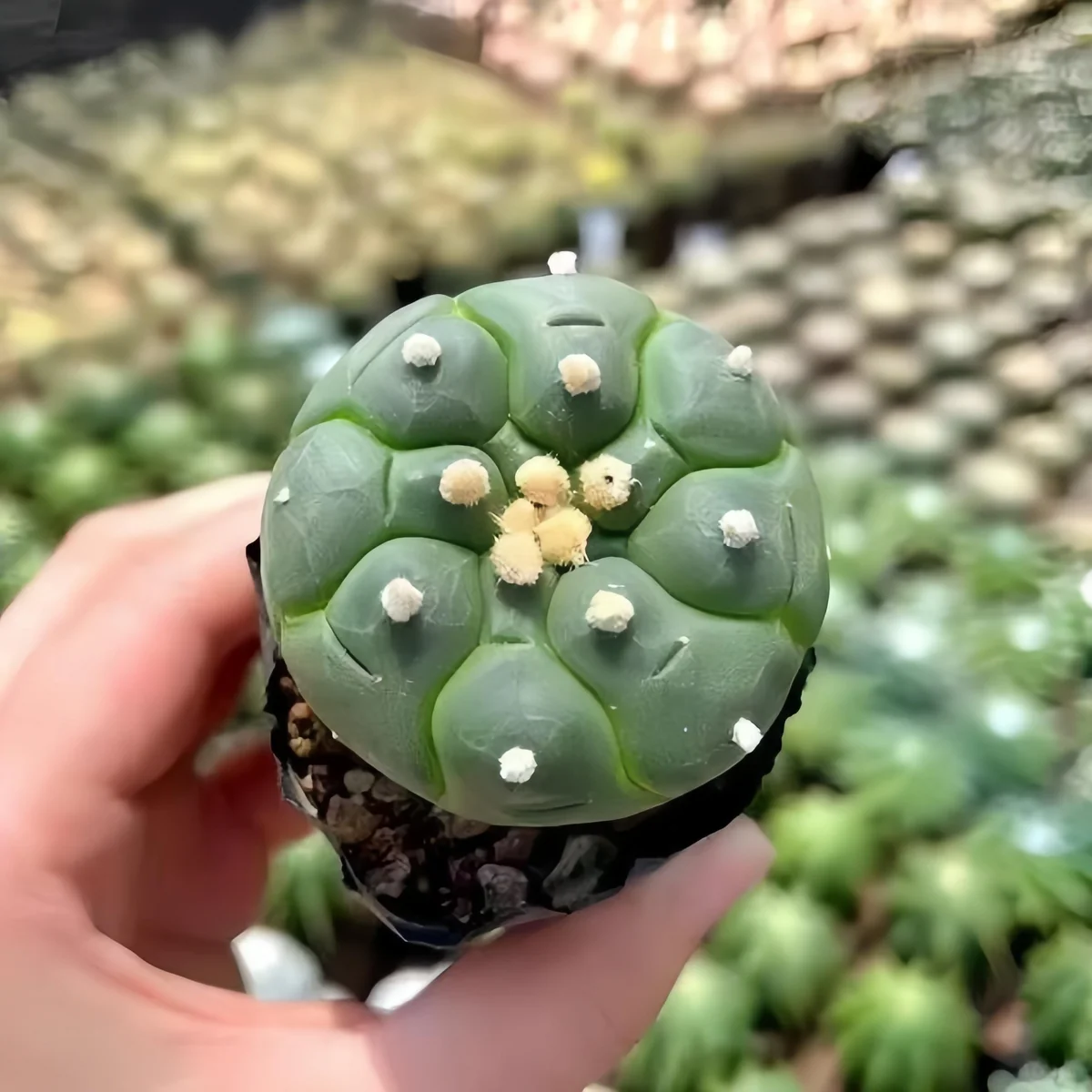 Well-draining soil is paramount for this rare succulent collector item. A specialized cactus or succulent potting mix, often containing sand, perlite, or pumice, will provide the necessary drainage and aeration. Avoid heavy, moisture-retentive soils. The ideal temperature range for this turtle shell cactus is between 65-80°F (18-27°C). It can tolerate slightly cooler temperatures but should be protected from frost. Fertilization is not frequently required; a diluted, balanced succulent fertilizer can be applied once in spring and once in summer during its active growing season. Watch out for common pests like mealybugs or spider mites, and treat them promptly with insecticidal soap if they appear.