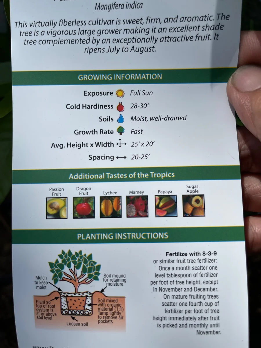 - Q: Will it survive winter in my zone? A: This mango tree is sensitive to frost. It thrives in USDA Zones 10-11 outdoors. If you are in a cooler zone, you will need to provide winter protection or grow it in a container that can be moved indoors.