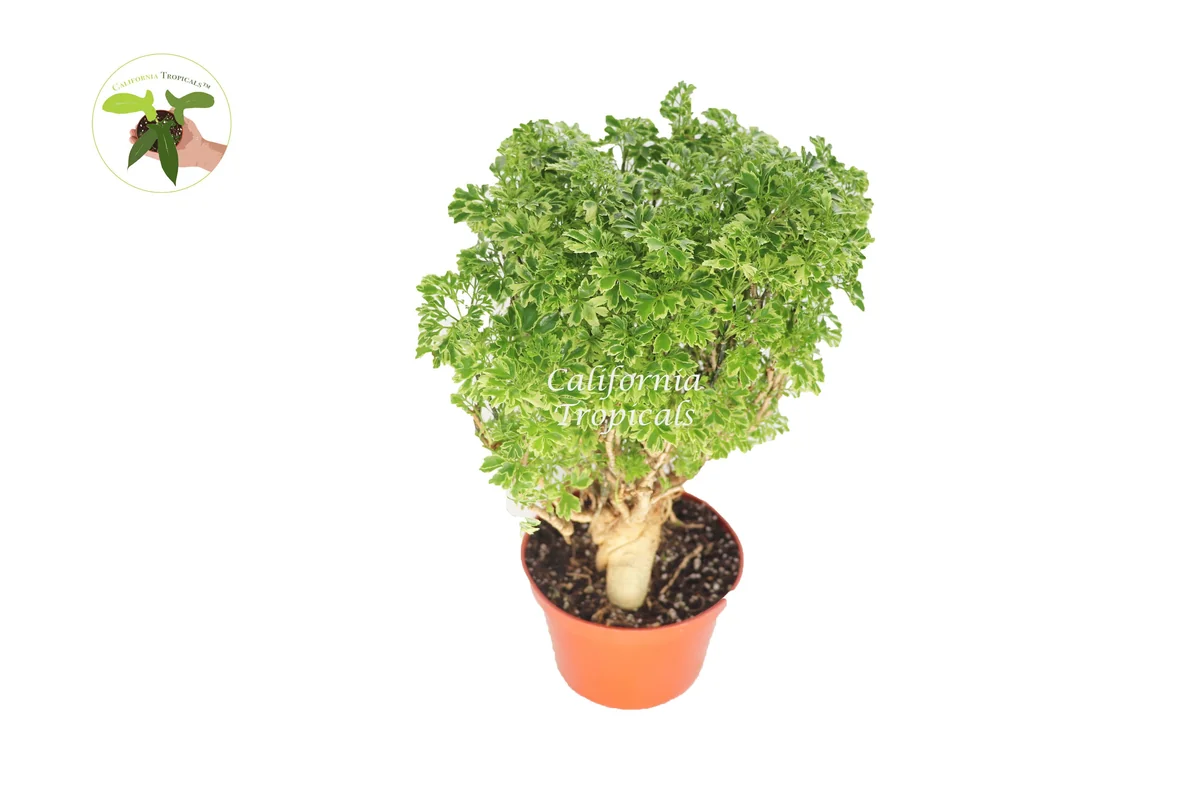 Enhance your home decor with a stunning variegated Ming Aralia live plant. This elegant 6-inch potted houseplant features intricate, lacy foliage with beautiful variegation, making it a unique and sophisticated addition to any indoor collection. Perfect for adding a touch of tropical charm.