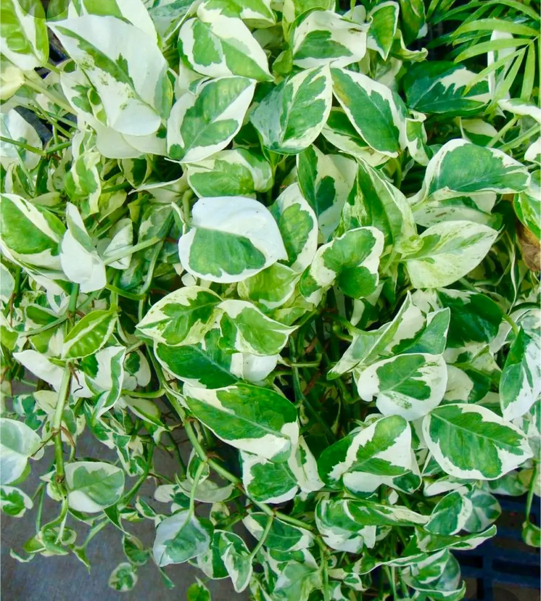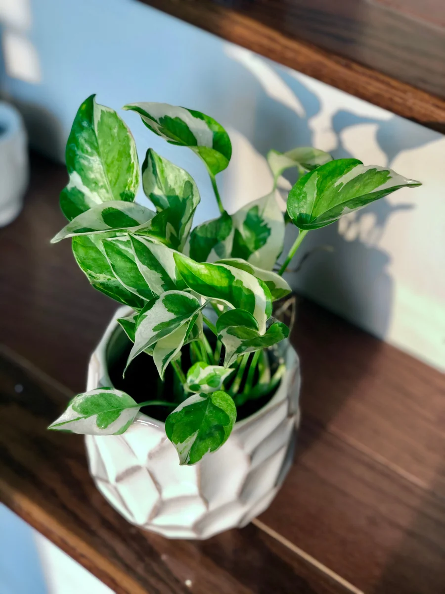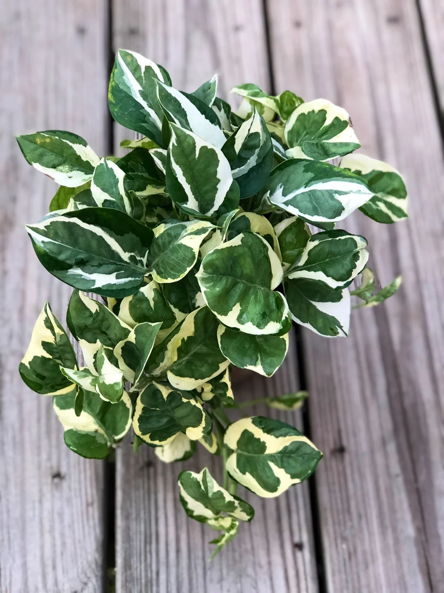 - Stunning Variegated Foliage: The most prominent feature of the variegated N’Joy Pothos live plant is its unique leaf patterns, showcasing splashes of white and light green against a darker green base. This visual appeal adds a sophisticated touch to any decor, providing a constant source of natural beauty.