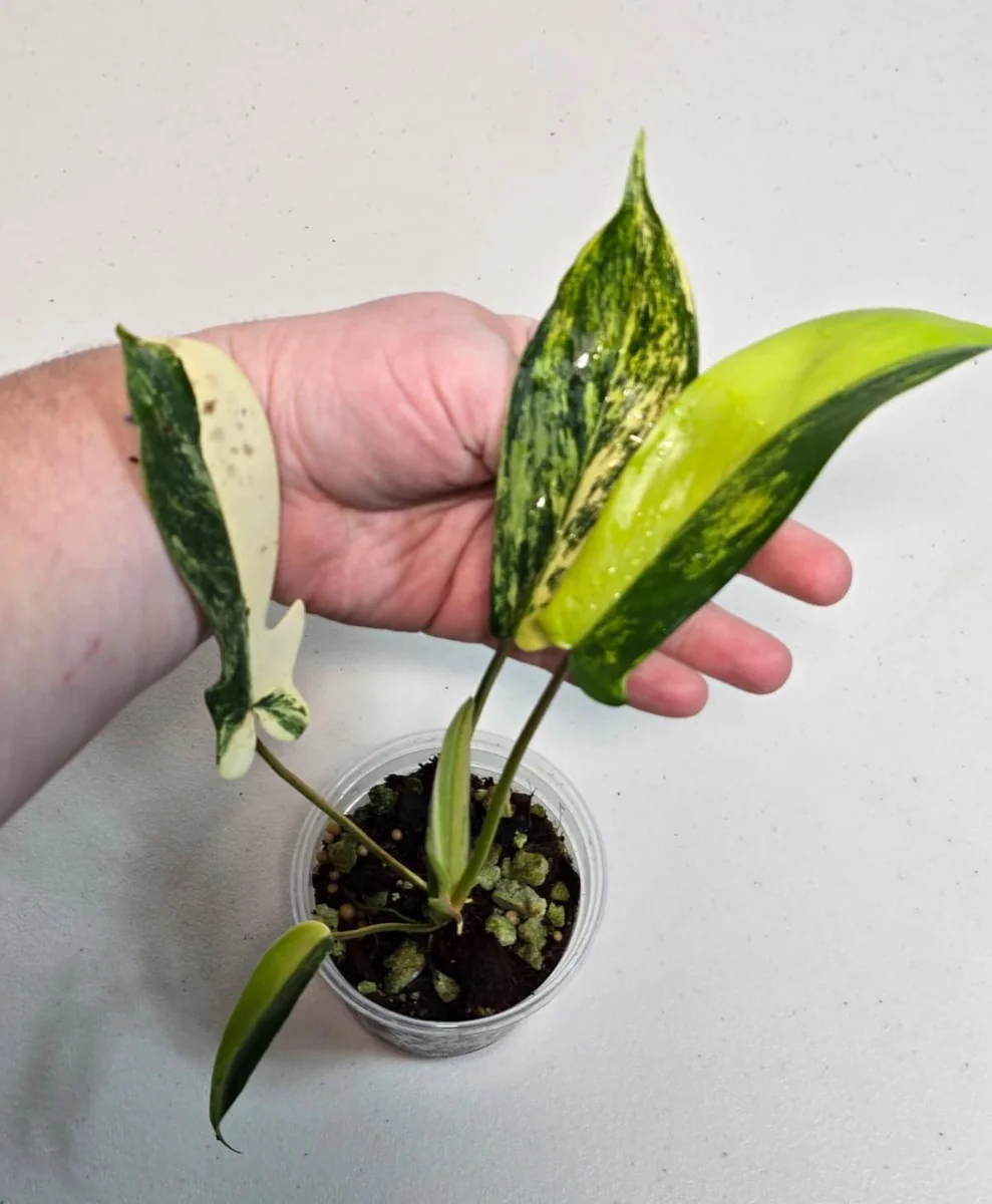 The Philodendron ‘Florida Beauty’ is characterized by its deeply lobed, heart-shaped leaves that emerge with a remarkable display of colors. The variegation is typically strong, with splashes and streaks of pristine white or pale yellow against a rich green backdrop. As a rare indoor plant, it provides an ongoing spectacle of natural beauty and growth. This particular offering ensures you receive the exact same potted plant as pictured, giving you confidence in the quality and specific aesthetics of your new botanical acquisition. It thrives indoors, adding a touch of the tropics and an air of sophistication to any room.
