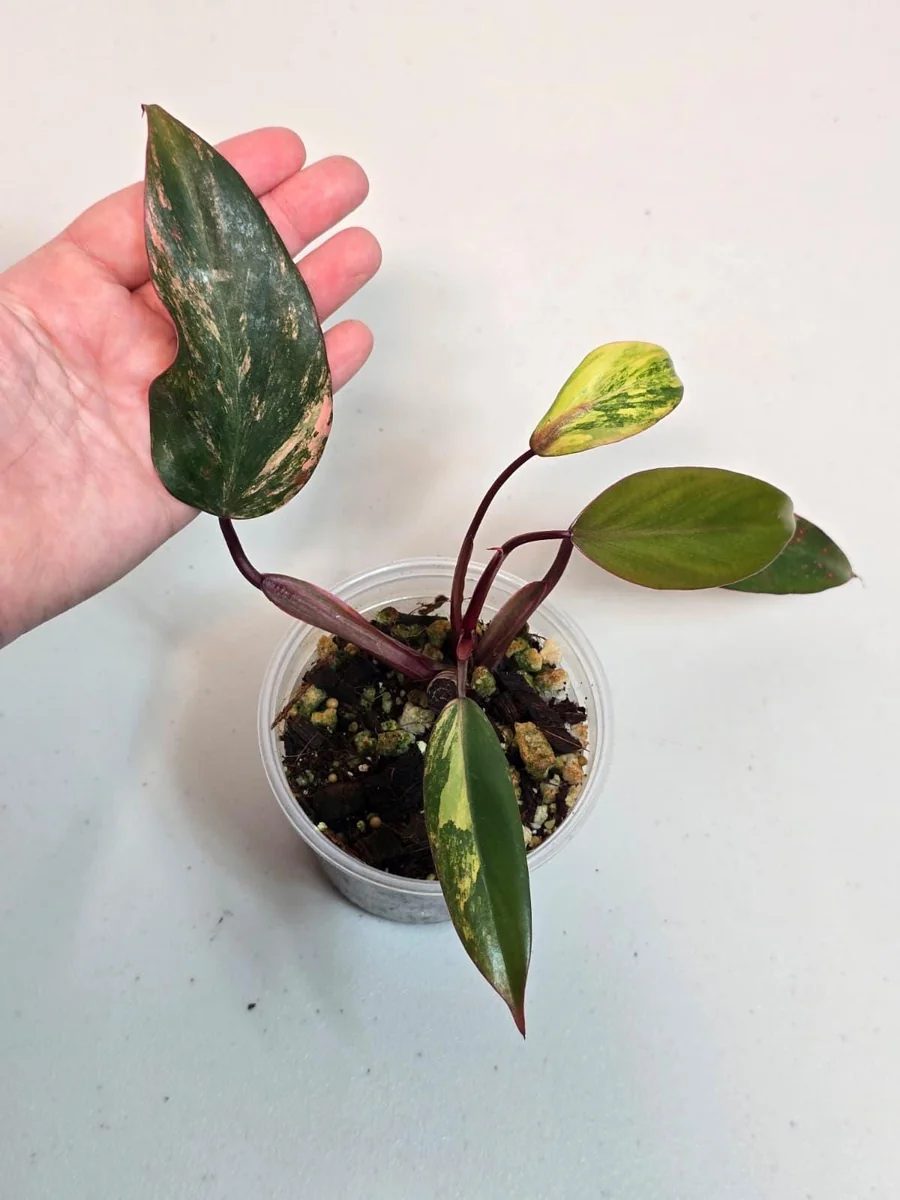 - Exceptional Aesthetic Appeal: The primary benefit is its unparalleled beauty. The vibrant splashes of pink, white, and red against green create a dynamic and eye-catching display. This makes the Variegated Philodendron Strawberry Shake a stunning decorative element that enhances any room’s ambiance.