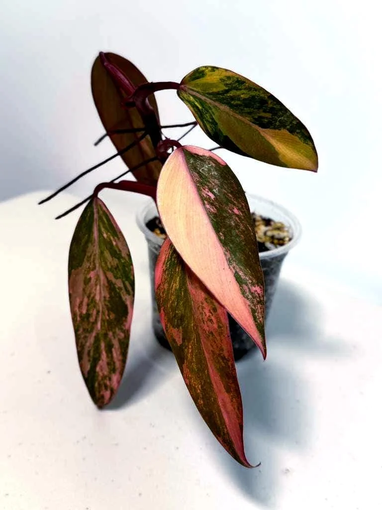 Welcome the captivating Variegated Philodendron Strawberry Shake into your home. This highly sought-after rare indoor plant is a true gem for any collector or enthusiast, celebrated for its stunning foliage. Each leaf is a unique masterpiece, displaying an intricate mix of rich green, creamy white, and splashes of bright pink or burgundy red. As a live plant, it offers dynamic beauty that evolves with each new leaf. The ‘Strawberry Shake’ philodendron is renowned for its vibrant, almost painterly variegation, making it a standout specimen in any indoor garden. This particular variety of philodendron is a hybrid known for its robust growth and relatively easy care, provided its specific needs are met. Its tropical origins mean it thrives in warm, humid environments, bringing a touch of the exotic to your living space. The Variegated Philodendron Strawberry Shake is more than just a plant; it’s a living piece of art that promises to be a focal point in your plant collection.