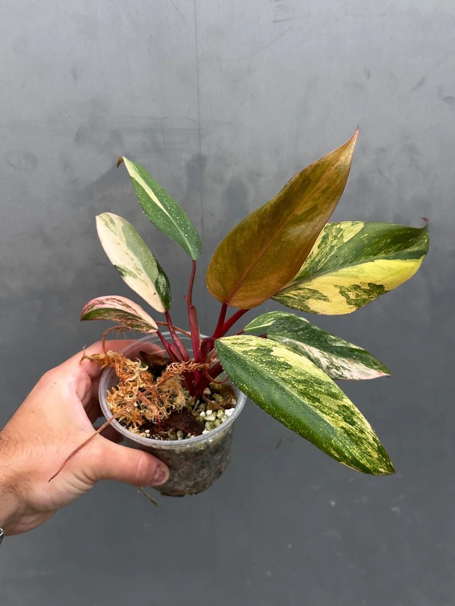 Introduce an extraordinary botanical specimen to your indoor jungle with the variegated philodendron strawberry shake. This live plant is a highly sought-after cultivar known for its mesmerizing foliage. Each heart-shaped leaf is a natural work of art, displaying a vibrant tapestry of green, creamy white, delicate pink, and rich burgundy red hues. Philodendron Strawberry Shake is a tropical aroid, making it a fantastic choice for enthusiasts looking for a piece of living art. Its unique coloration and relatively manageable care requirements make it a rewarding addition for both seasoned collectors and those new to the world of rare houseplants. This particular plant is a true gem, offering an unparalleled visual appeal that transforms any living space into a botanical sanctuary.