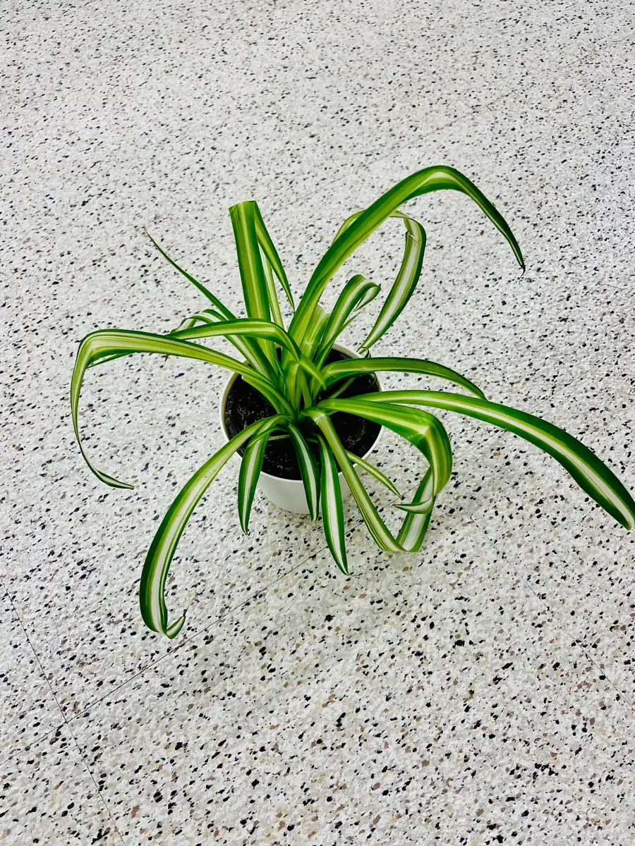 Fertilize your variegated spider plant every 2-4 weeks during the spring and summer growing season with a balanced liquid houseplant fertilizer diluted to half strength. Reduce or stop fertilizing during fall and winter. Repotting is generally needed every 1-2 years, or when the plant becomes root-bound, to provide fresh nutrients and space for growth. This indoor trailing plant is quite resilient to pests, but occasionally mealybugs or spider mites may appear. Inspect your plant regularly and treat any infestations promptly with insecticidal soap or neem oil. With these simple spider plant care tips, your plant will flourish and become a beautiful addition to your home.
