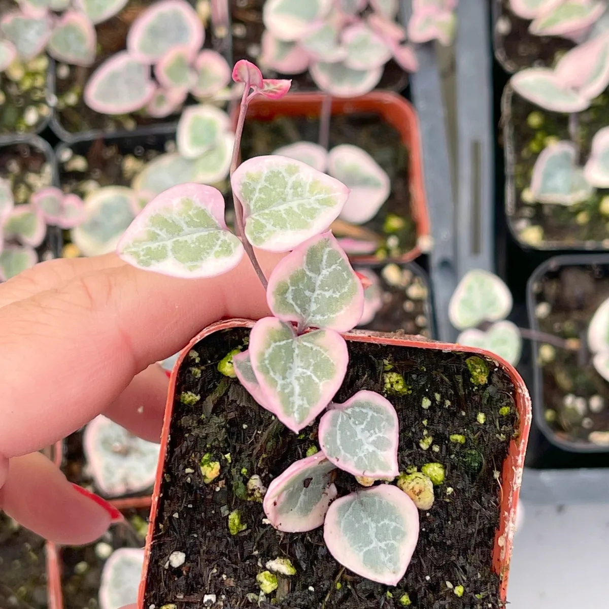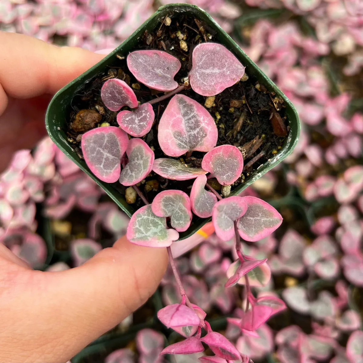- Stunning Variegation: Each leaf presents a beautiful mosaic of pink, silver, and green, providing continuous visual interest and a unique decorative element. This natural artwork makes every variegated string of hearts live plant truly one-of-a-kind.