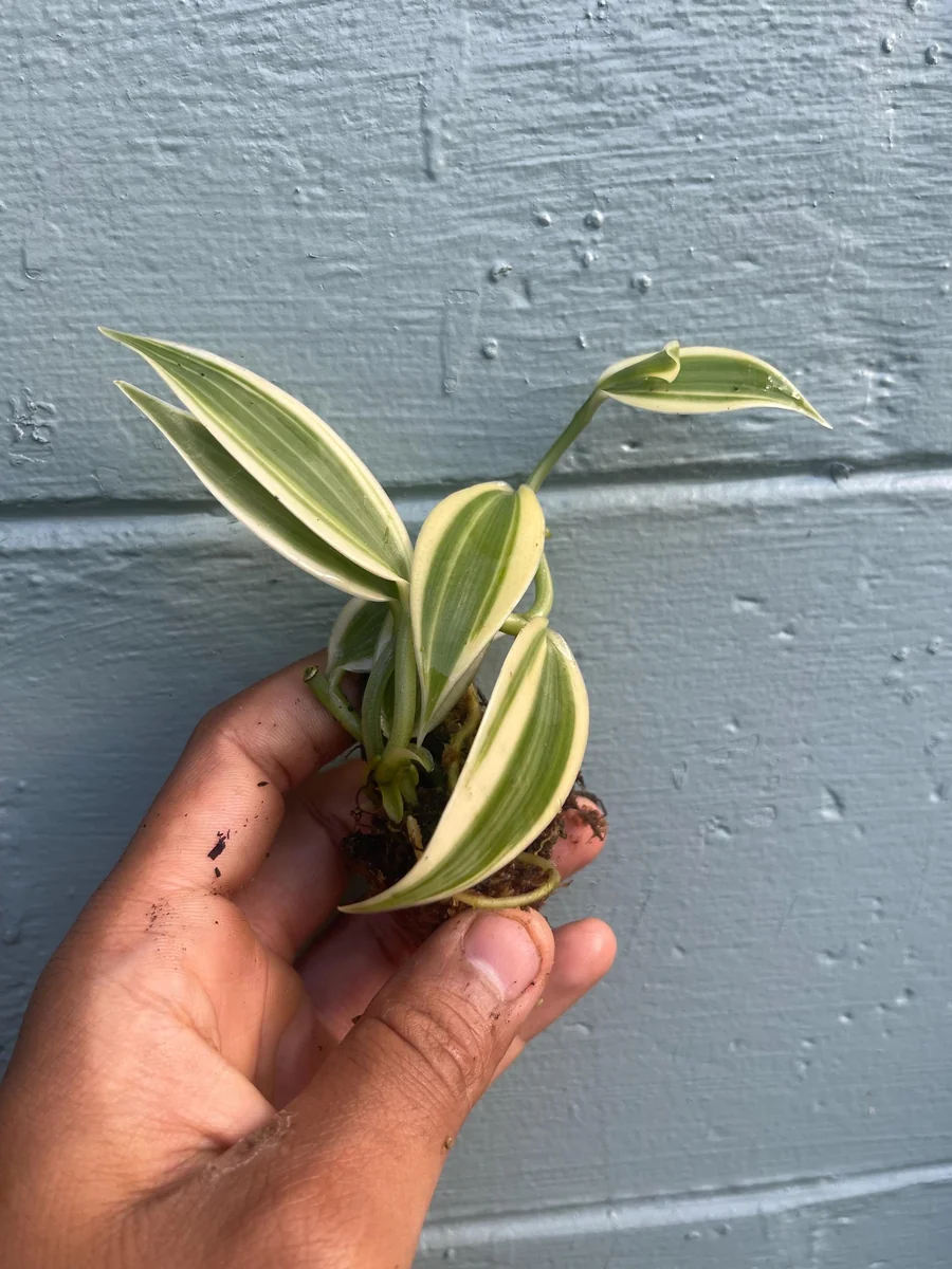 Rare and Collectible Variegated Form: This specific variety stands out with its striking creamy yellow and green variegated leaves, making it a highly sought-after specimen for plant collectors and enthusiasts. Its unique foliage adds an unparalleled visual interest compared to standard vanilla orchids.