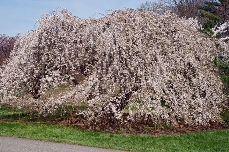 - Low Canopy Spread: The wide horizontal branches create a dramatic, cascading effect that can be enjoyed from all angles. This distinctive growth habit is what makes the weeping cherry for sale so desirable.