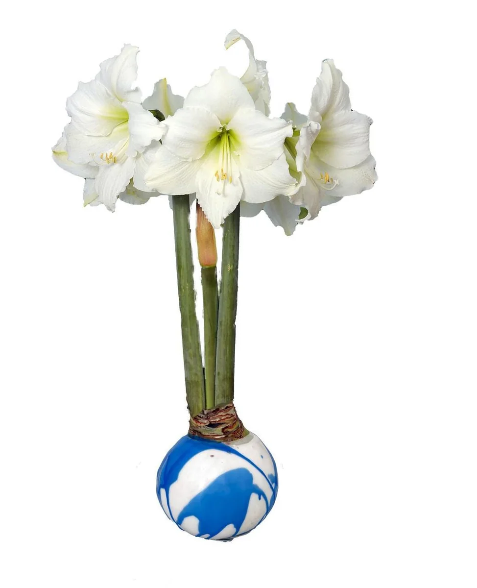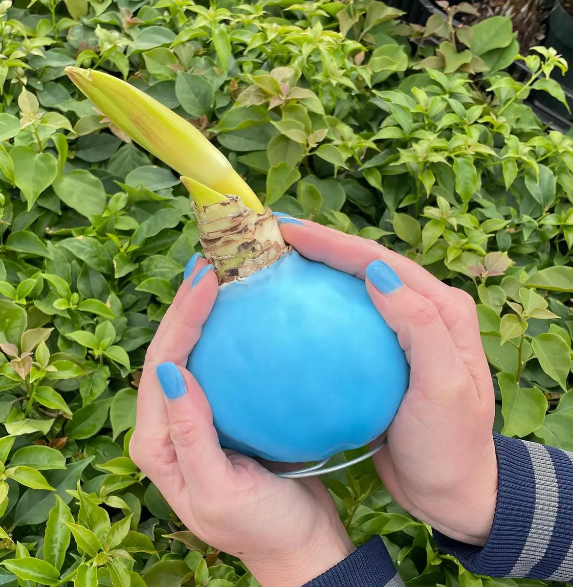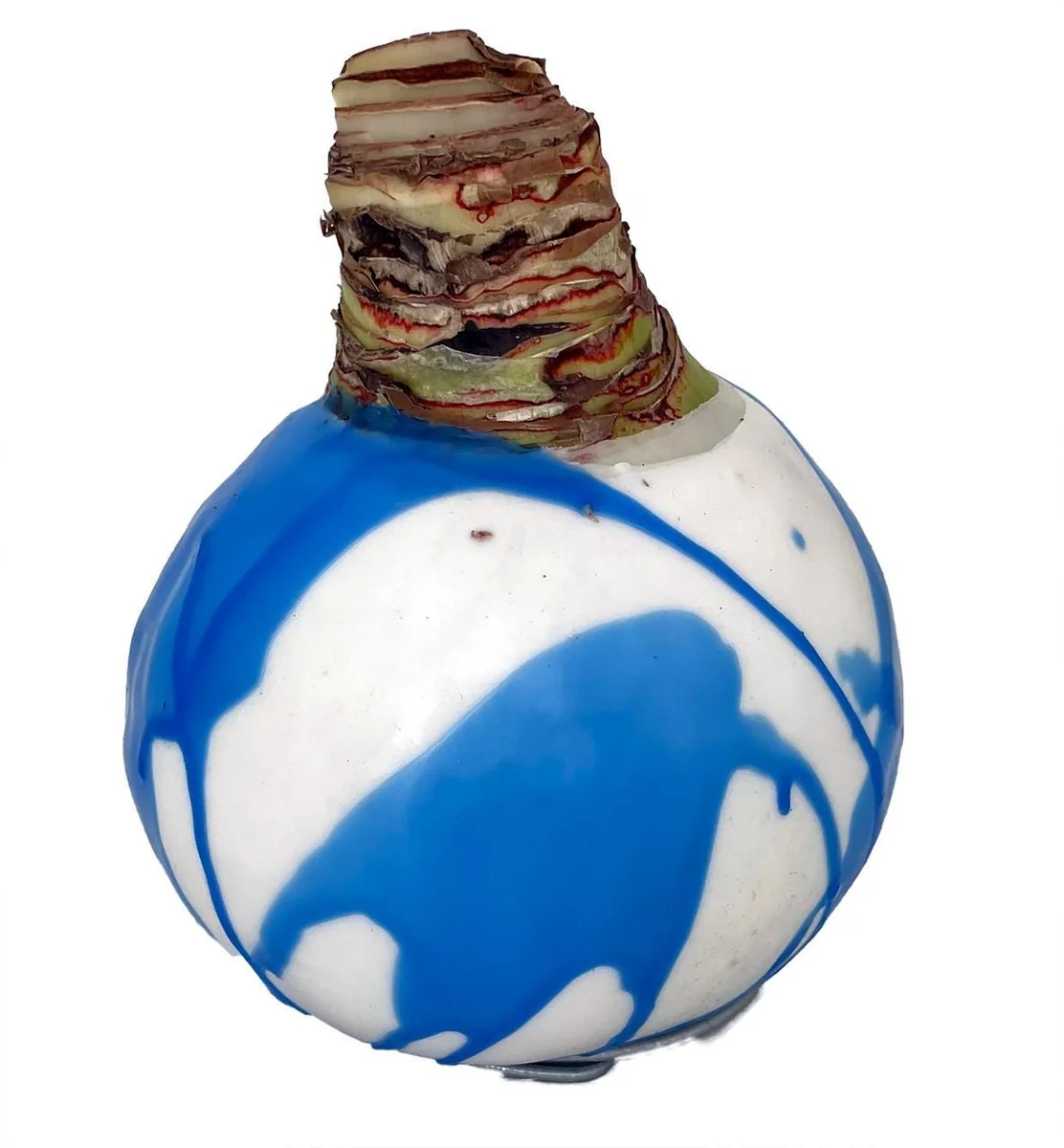 - Q: What if the splatter pattern on my bulb looks different from the picture? A: The splatter pattern on the blue wax will vary with each individual bulb, ensuring that each no water amaryllis is unique.