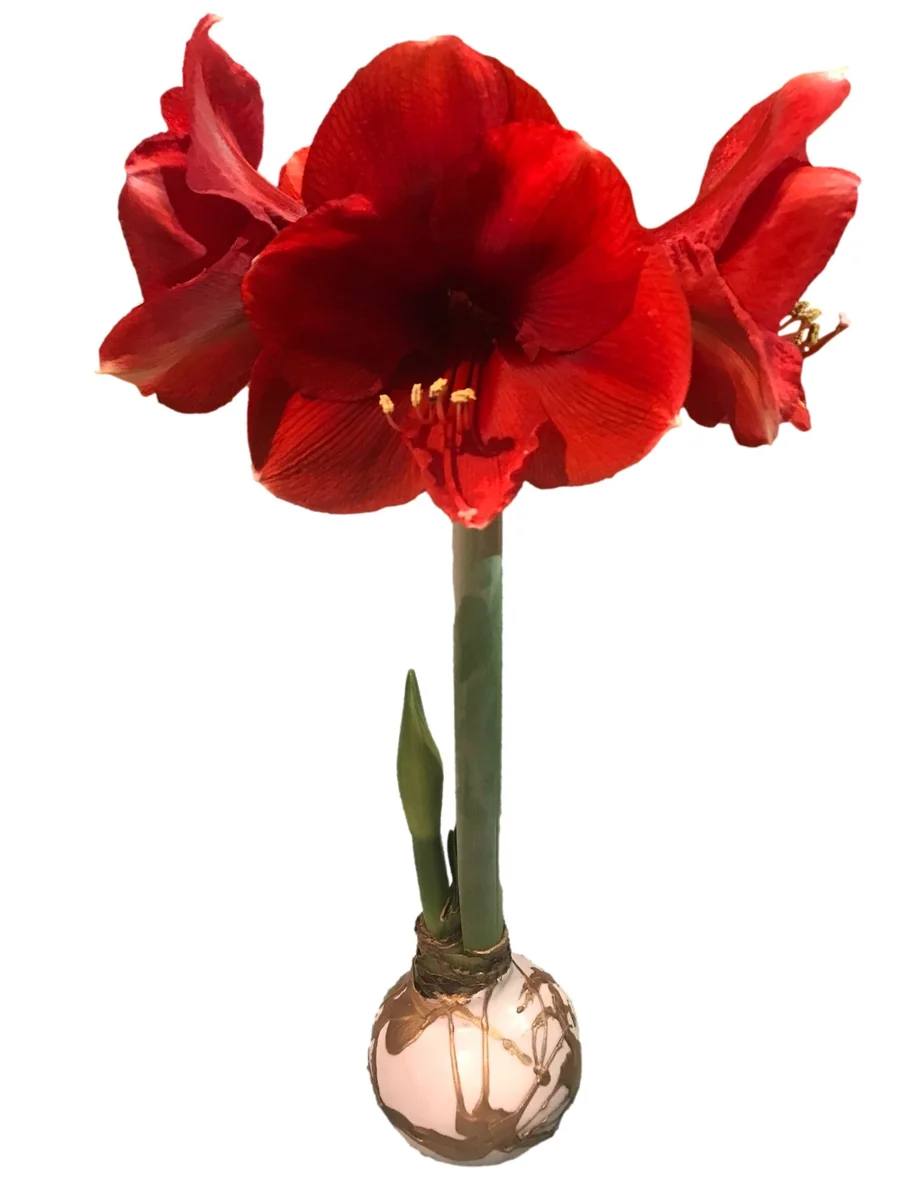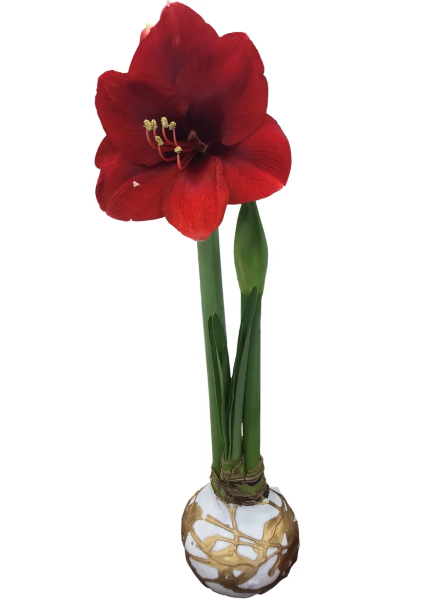 White & Gold Splatter Waxed Victoria Amaryllis Bulb 28/32cm – Easy Care