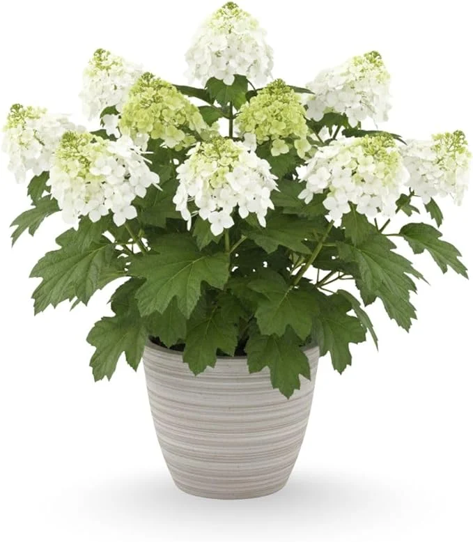 The distinctive lobed leaves contribute to its appealing aesthetic, providing a lush green backdrop for the long flower clusters. These clusters gradually open from bottom to top, creating a harmonious and elegant visual. The plant’s compact nature means it won’t outgrow its space quickly, making it a sustainable choice for your garden design. Expect consistent blooms year after year when provided with suitable growing conditions and care, transforming from a pristine white to a charming pink. This compact hydrangea plant is a testament to natural beauty and thoughtful cultivation, promising enduring elegance for your outdoor living areas.