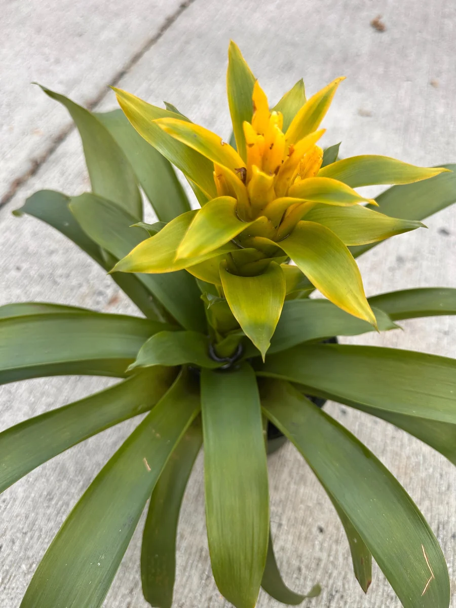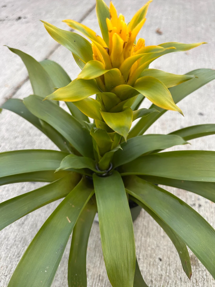 Originating from tropical and subtropical regions of the Americas, bromeliads are incredibly diverse, with thousands of species. The yellow bromeliad, often a Guzmania or Aechmea variety, is admired for its resilience and ability to thrive in outdoor conditions, especially when provided with ample sunlight. Its architectural form and vibrant coloration make it a focal point in any plant collection or landscape design. Whether you’re creating a tropical oasis or simply want a low-maintenance, high-impact plant, this yellow bromeliad is an excellent selection.