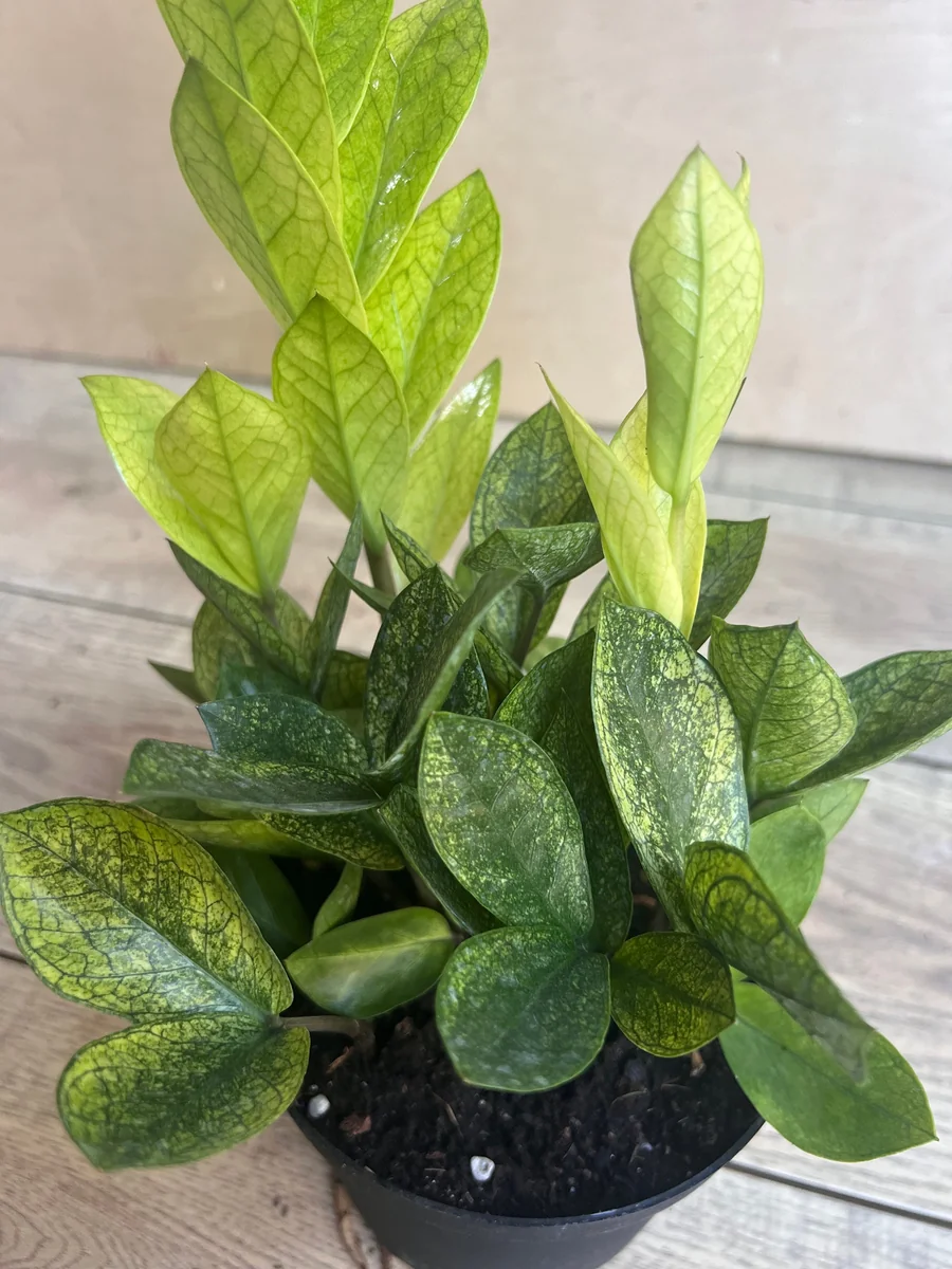 The ZZ Chameleon live plant you will receive is presented in a 6 inch pot, offering a substantial and healthy start to its life in your home. This size provides a good balance between a mature enough plant to show its distinctive characteristics and one that is still manageable for placement on shelves, desks, or plant stands. ZZ Plants are known for their slow to moderate growth rate, typically reaching indoor heights of 2-5 feet, depending on the environmental conditions and care provided. Its upright growth habit makes it an excellent choice for vertical interest in your plant collection. This particular changing leaf color plant will continue to grow and develop its unique foliage display over time, providing lasting beauty.