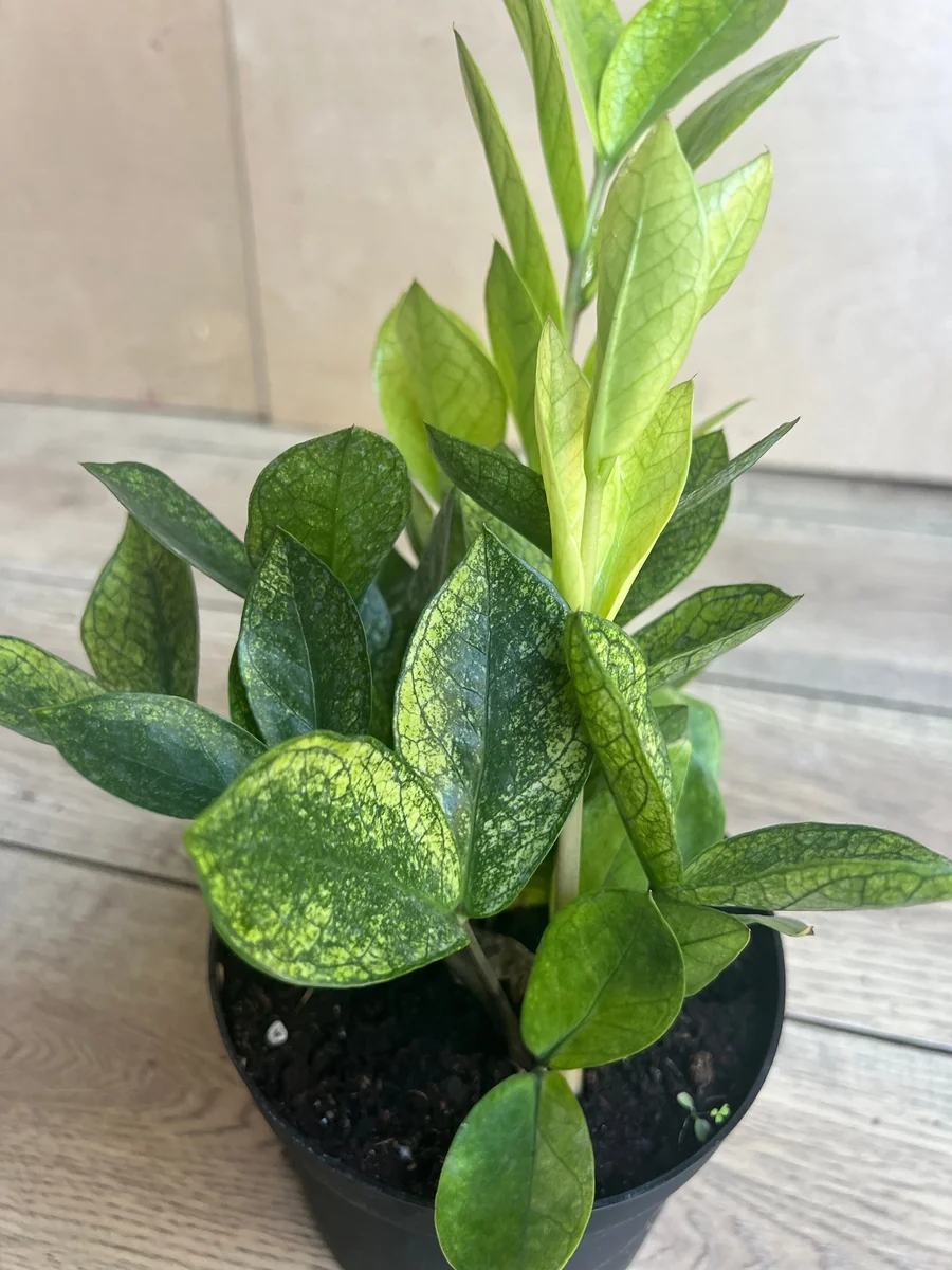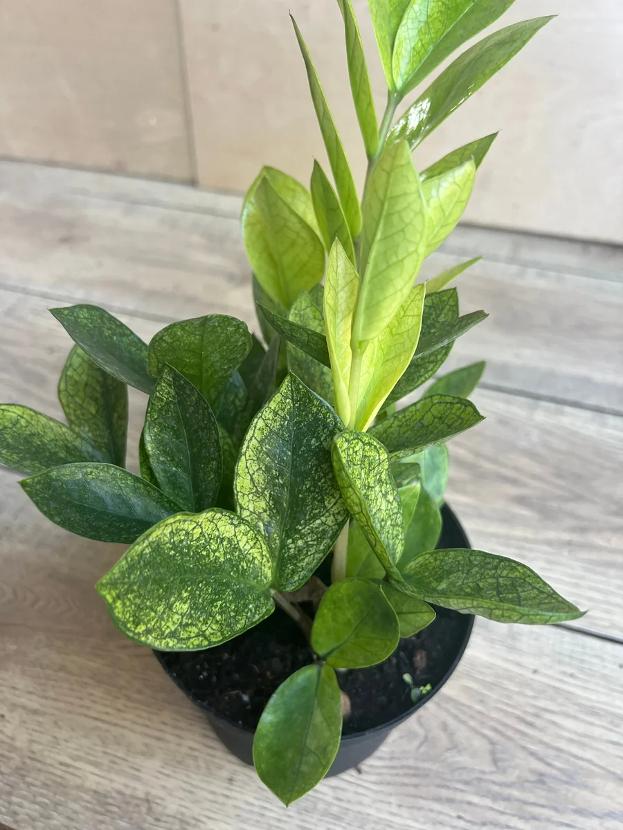The plant is shipped as a fully rooted specimen in its nursery pot, ensuring it arrives healthy and ready for its new environment. While it is ready to be admired, we recommend waiting at least 3-6 months before transplanting to allow it to acclimate fully. The thick, glossy leaves and sturdy stems contribute to its robust appearance and its ability to store water, making it a truly resilient and visually appealing addition to your indoor garden. Expect a healthy, established plant that embodies the vibrant characteristics of the ZZ Chameleon live plant.